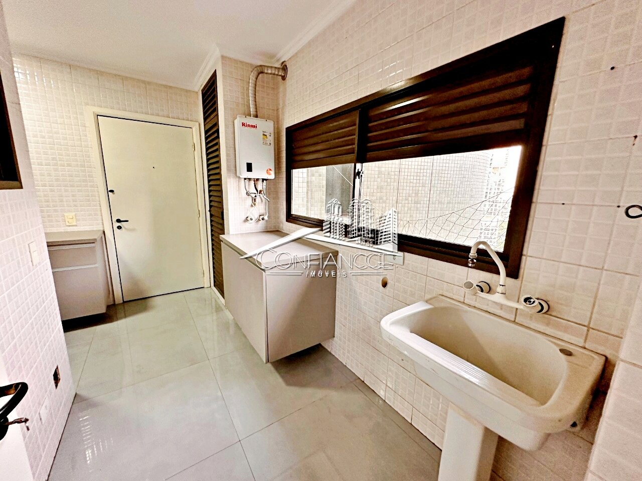 Cozinha equipada e área de serviço completa, planejadas para praticidade e conforto