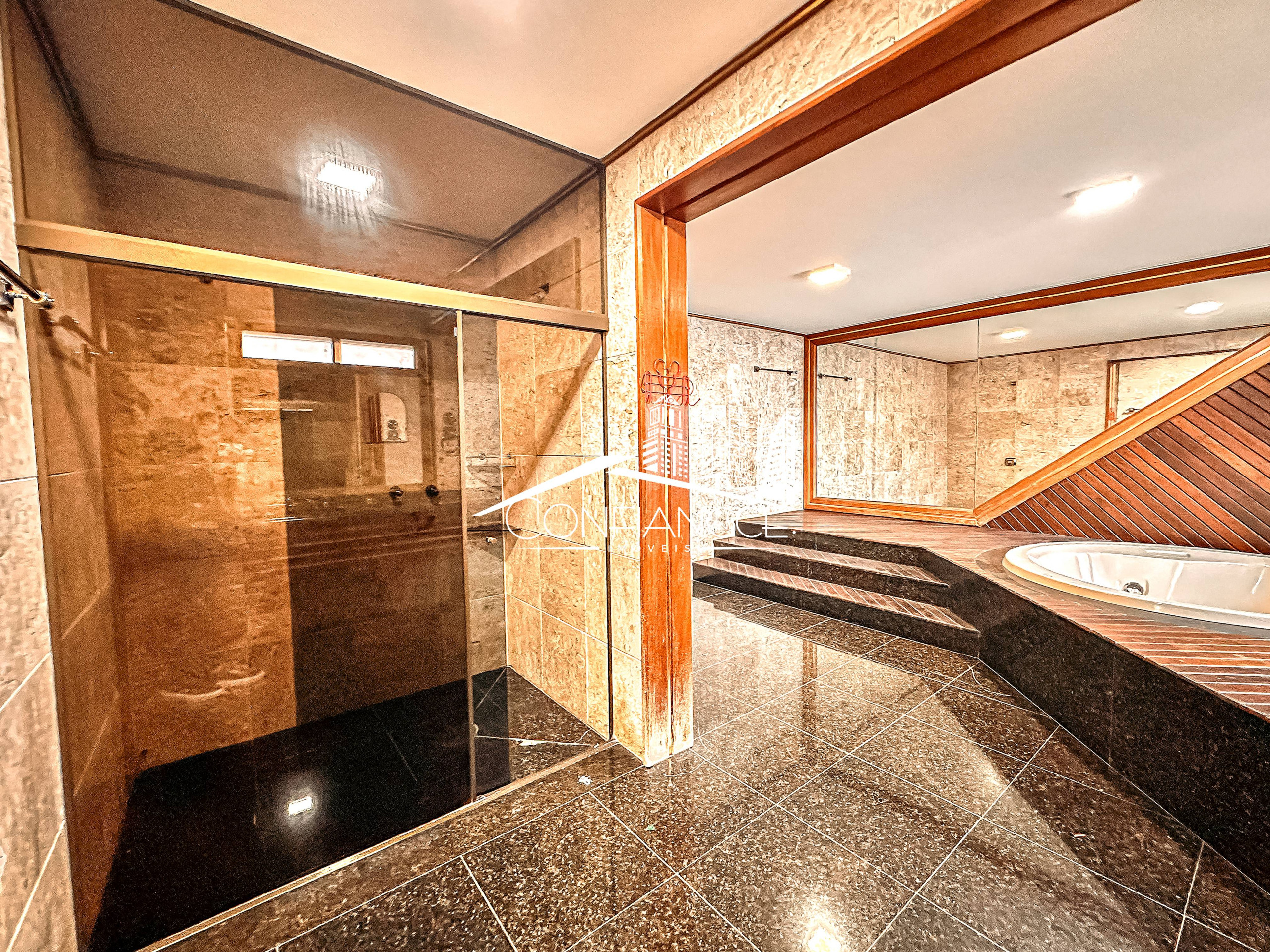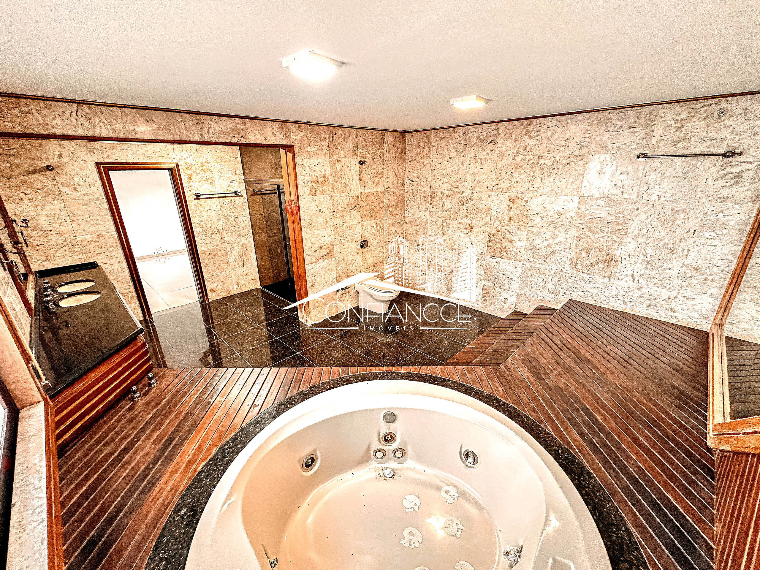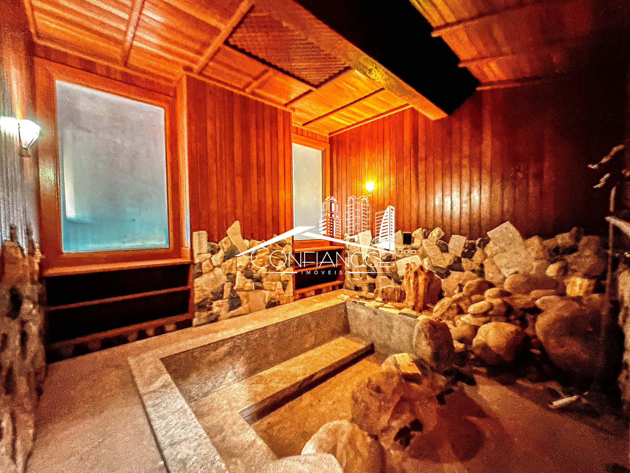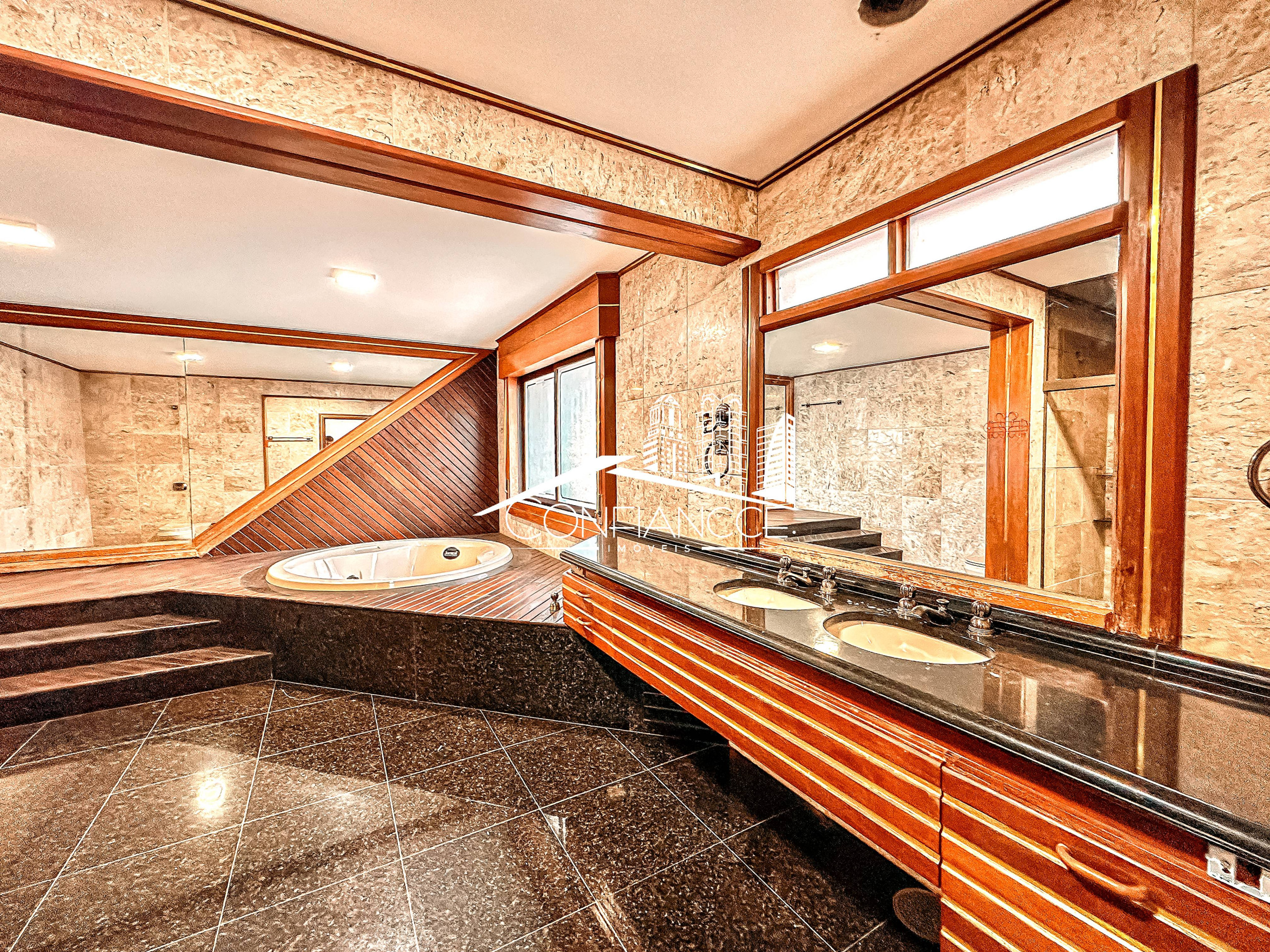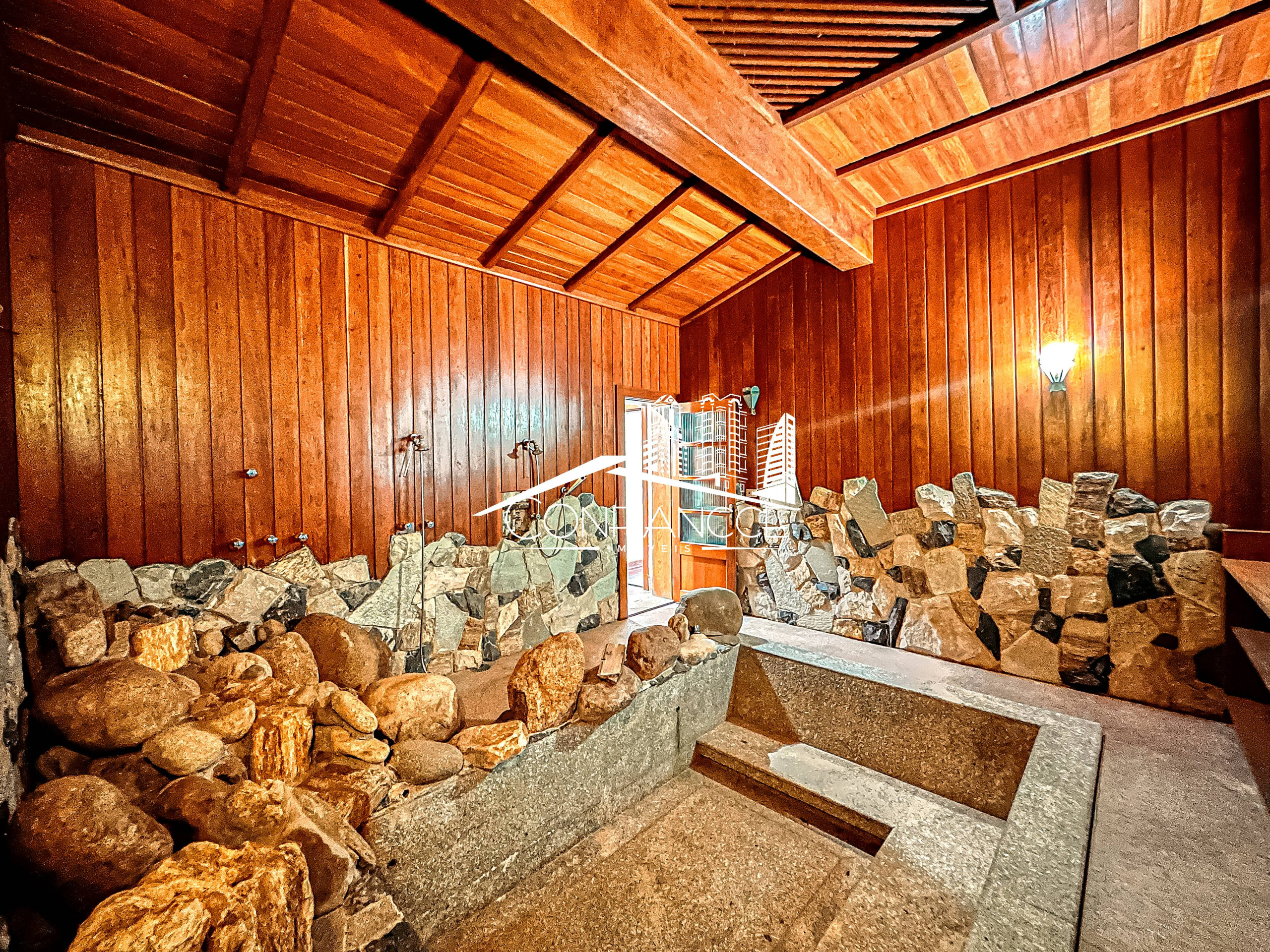 - Possui sala de estar, sala de jantar, cozinha com armários, 7 dormitórios (sendo 1 suíte), varanda, jardim, piscina, área de festas com churrasqueira, e vaga de garagem coberta e descoberta.
