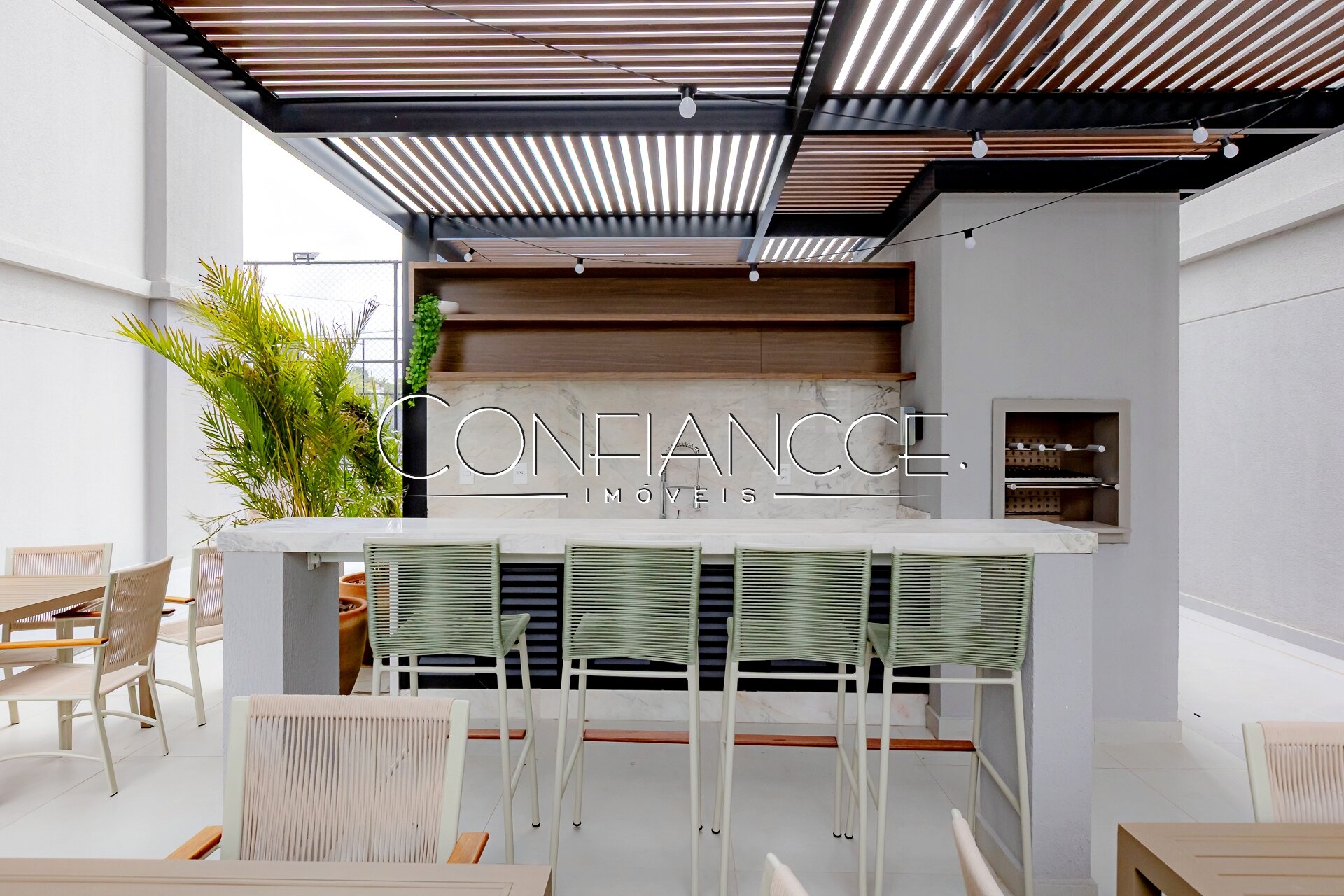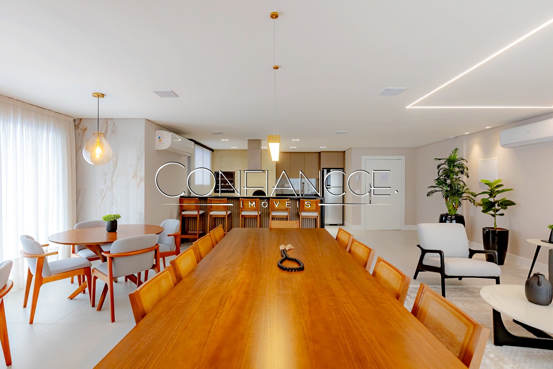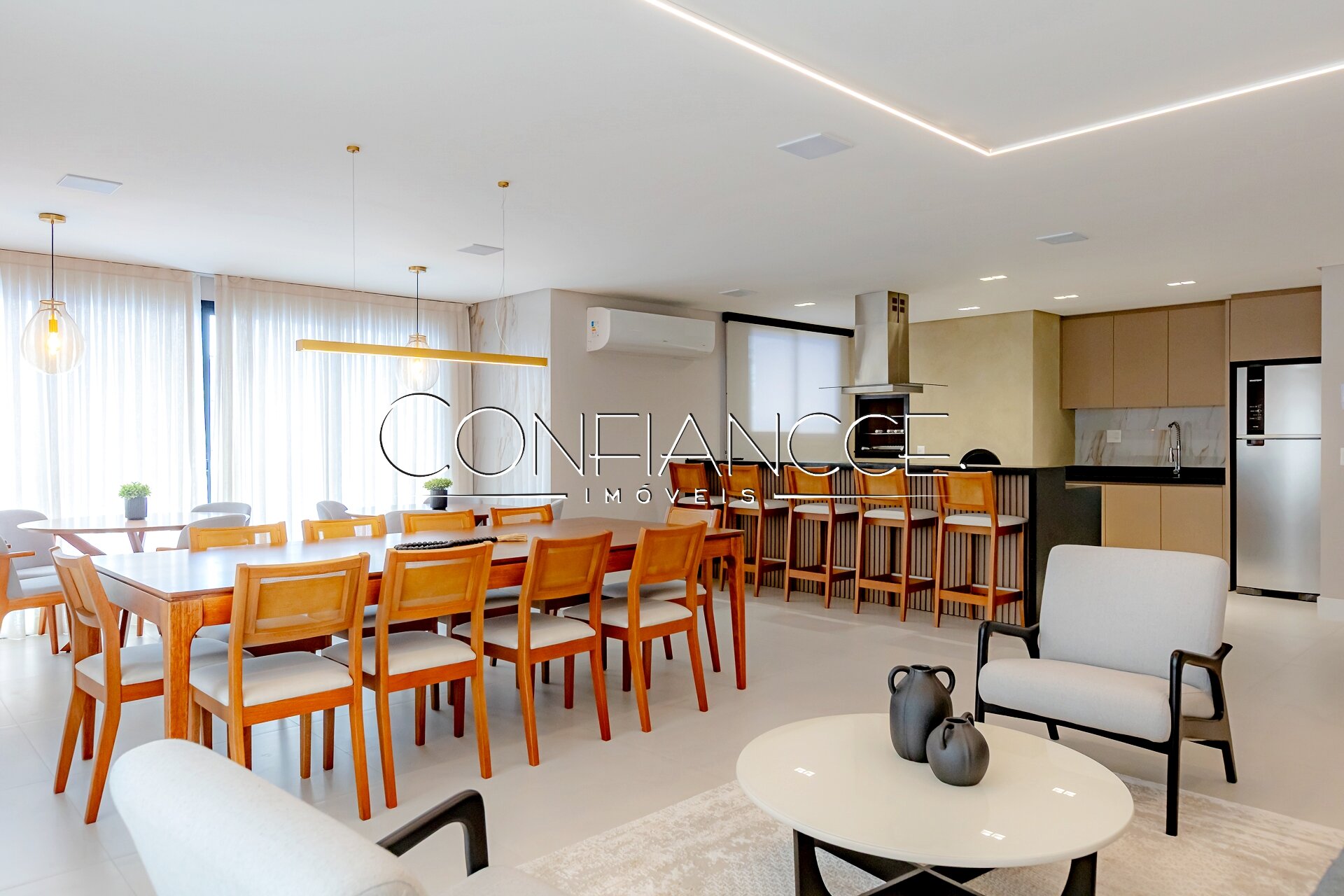 Área de lazer ampla com diversos ambientes integrados