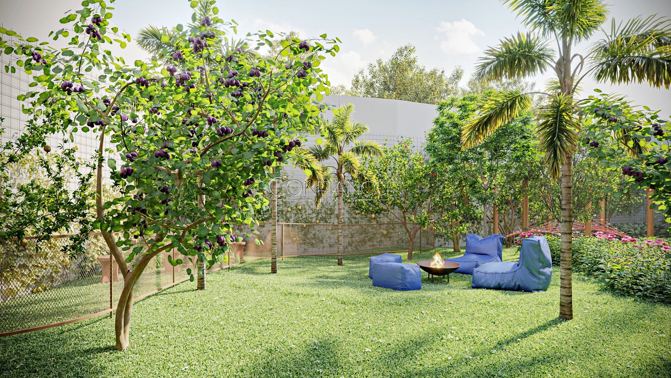 Redário, espaço zen, fire place e área pet