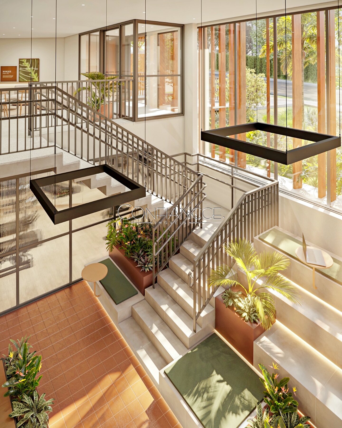 Elevador social e hall com pé direito duplo