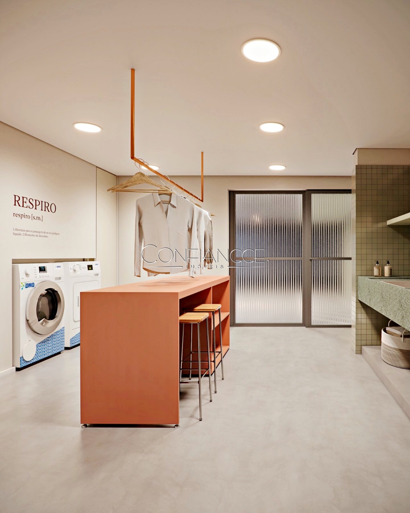 Lavanderia compartilhada e market para mais conveniência