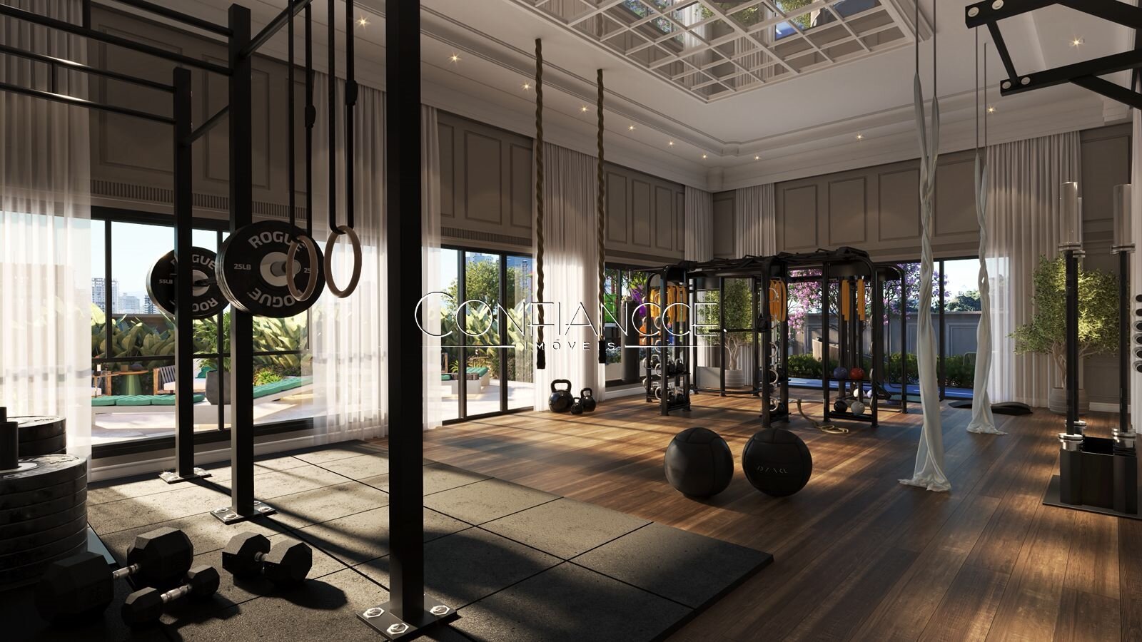 Academia equipada e espaço funcional